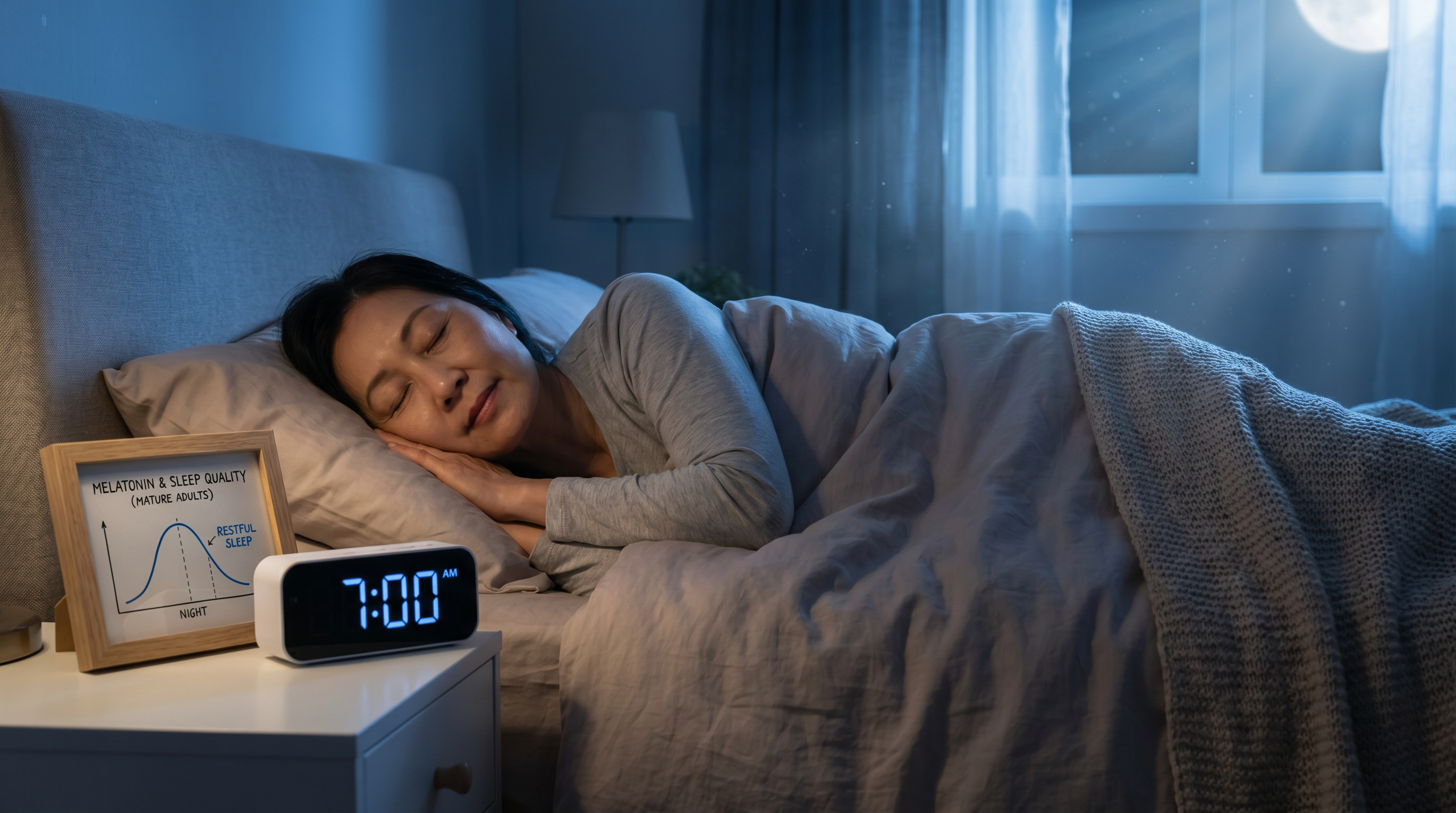 過咗50歲之後朝早越嚟越早醒、夜晚成日扎醒,瞓完都覺得唔夠精神?根據[需核實: 年份]2026年發表喺《Frontiers in Neuroscience》嘅研究顯示,50歲以上人士嘅褪黑素夜間峰值可以下降高達60%[需核實: 具體百分比],深層睡眠更可能比後生時減少75%[需核實: 具體百分比]。本文將解答:點解50歲後生理時鐘會提前?如何喺香港環境下有效改善睡眠?褪黑素補充劑喺邊度買同點樣安全使用?幾時應該去邊度求醫?