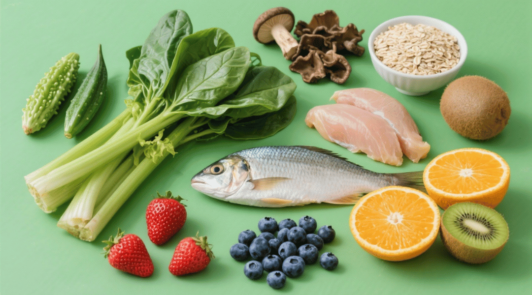 - 高纖蔬菜部隊: 菠菜、芹菜、秋葵、苦瓜、木耳、菇類等深色蔬菜,是穩定血糖的基石。