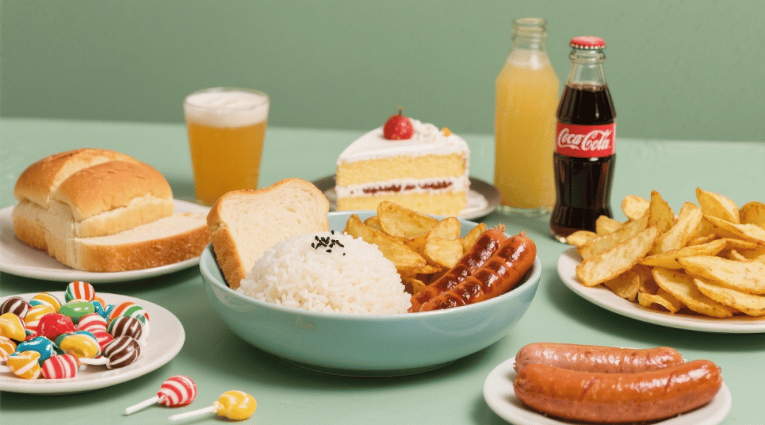- 精製澱粉與高糖甜品: 白飯、白麵包、蛋糕、餅乾、糖果、雪糕。