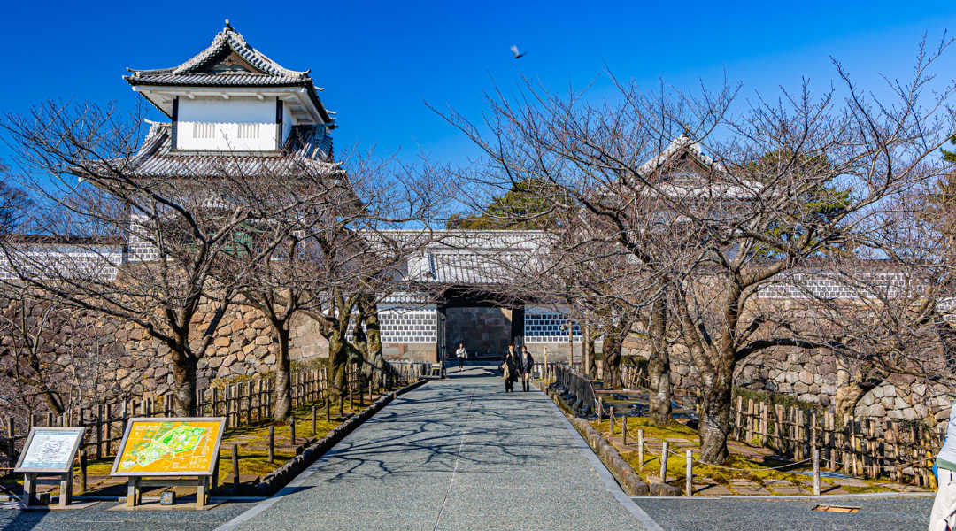要到兼六園可從金澤JR駅傍的巴士站乘搭金澤循環線巴士或11錦町B線巴士往石川縣立圖書館方向,在兼六園金澤城駅下車,車程十六分鐘,極之方面。
